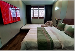 民宿內(nèi)有上下兩層客房。一樓有7間普通客房,配備中央空調(diào)、24小時(shí)熱水、高速wifi全覆蓋。二樓有浣溪、竹海、星羅、踏雪、邀月、依山等高檔套房,全新升級(jí)并配備茶幾、沙發(fā)、干濕分離衛(wèi)浴。其中“依山”套房還內(nèi)置浴缸和按摩椅。內(nèi)設(shè)設(shè)有餐廳、書(shū)吧、咖啡、茶室、棋牌、戶外休閑場(chǎng)地等,可在大堂吧品茶,放松身心。