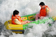 云溪漂流從關(guān)刀鎮(zhèn)上堡村夜合橋至道上村的峽谷河段,長度約6.2公里,梯級總落差176米。其風(fēng)景資源主要包括,碧龍?zhí)镀俨迹洳罴s53米)及其上下游的峽谷景觀。峽谷地勢險要,潔白的巖石連綿不絕,形成數(shù)千米的白石灘,溪水長流不斷,跌水成瀑,積水成潭,溪面寬窄隨峽谷地形變化,構(gòu)成“瀑潭連綴,奇山怪石” 優(yōu)美的峽谷景觀。云溪漂流項目利用豐富奇特的河道資源,進行合理整治和建設(shè),在保護原生態(tài)景觀的同時,保證趣味性、刺激性和安全性。